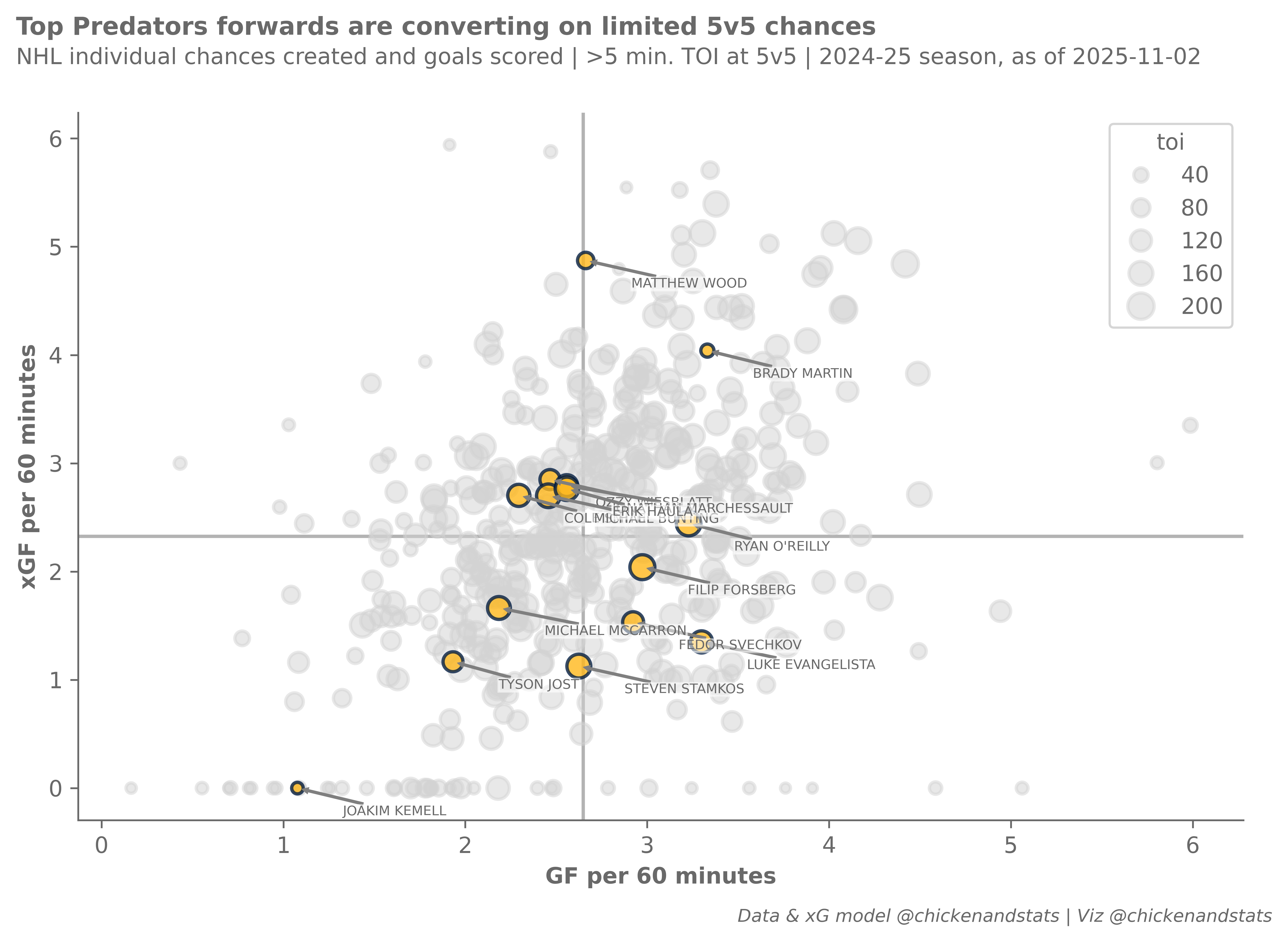 fig_suptitle = "Top Predators forwards are converting on limited 5v5 chances"